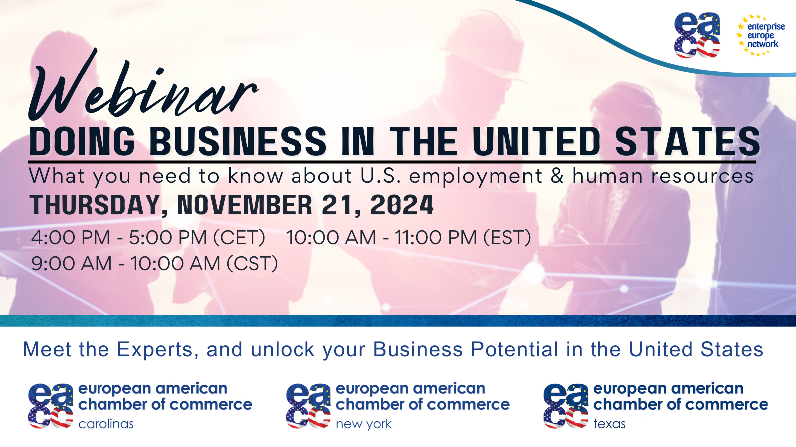 This webinar will provide valuable insights for companies looking to navigate the complexities of employment and human resources in the U.S. Participants will learn about the legal landscape, cultural nuances, and practical strategies for successful operations.
