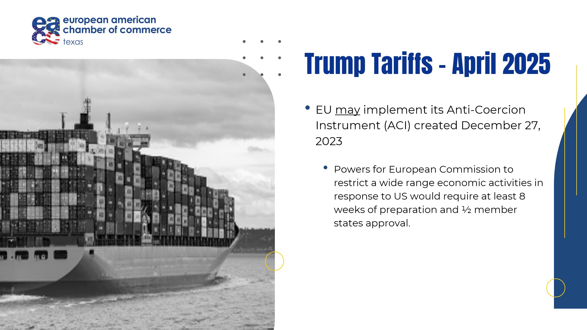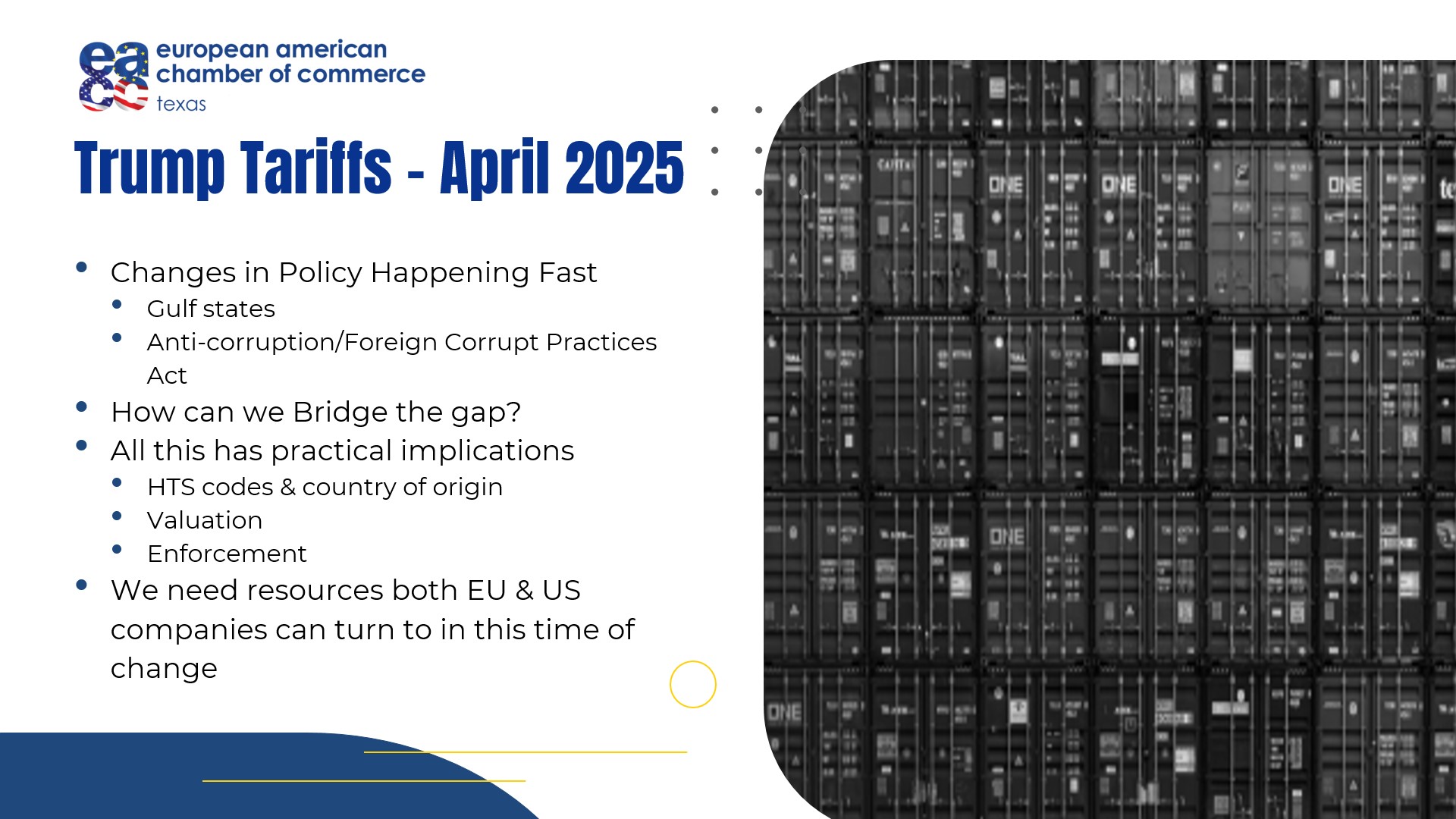 The EACC Texas announces the launch of a dedicated industry taskforce on trade… encompassing the interconnectedness of supply chain, logistics, customs, tariffs, transportation and risk.