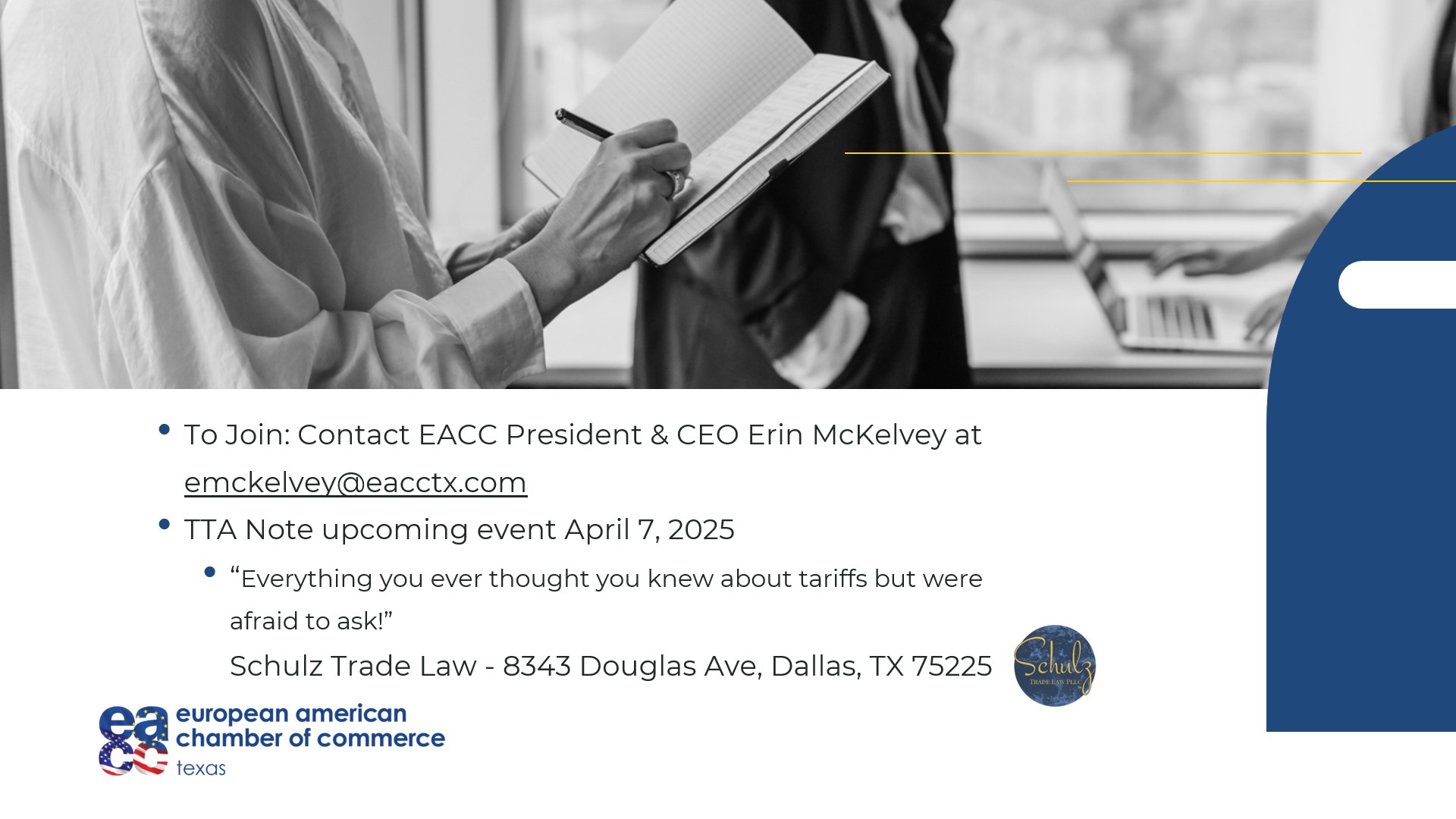 If you are interested in knowing more, join us on April 7th as we launch the first ETTA event at Schulz Trade Law PLLC, or send a note to see how your company can participate.
