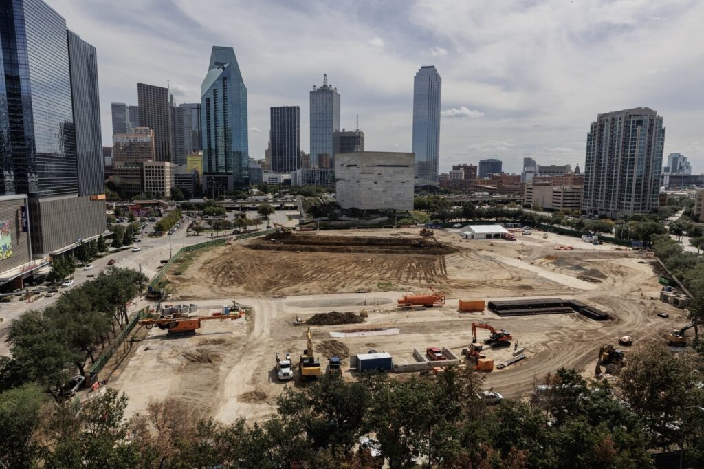 DALLAS—Ross Perot Jr. gestured out the window as his helicopter circled a 4.5-acre pit alongside the skyline of downtown Dallas. Texas and U.S. flags hung from a crane within it.
